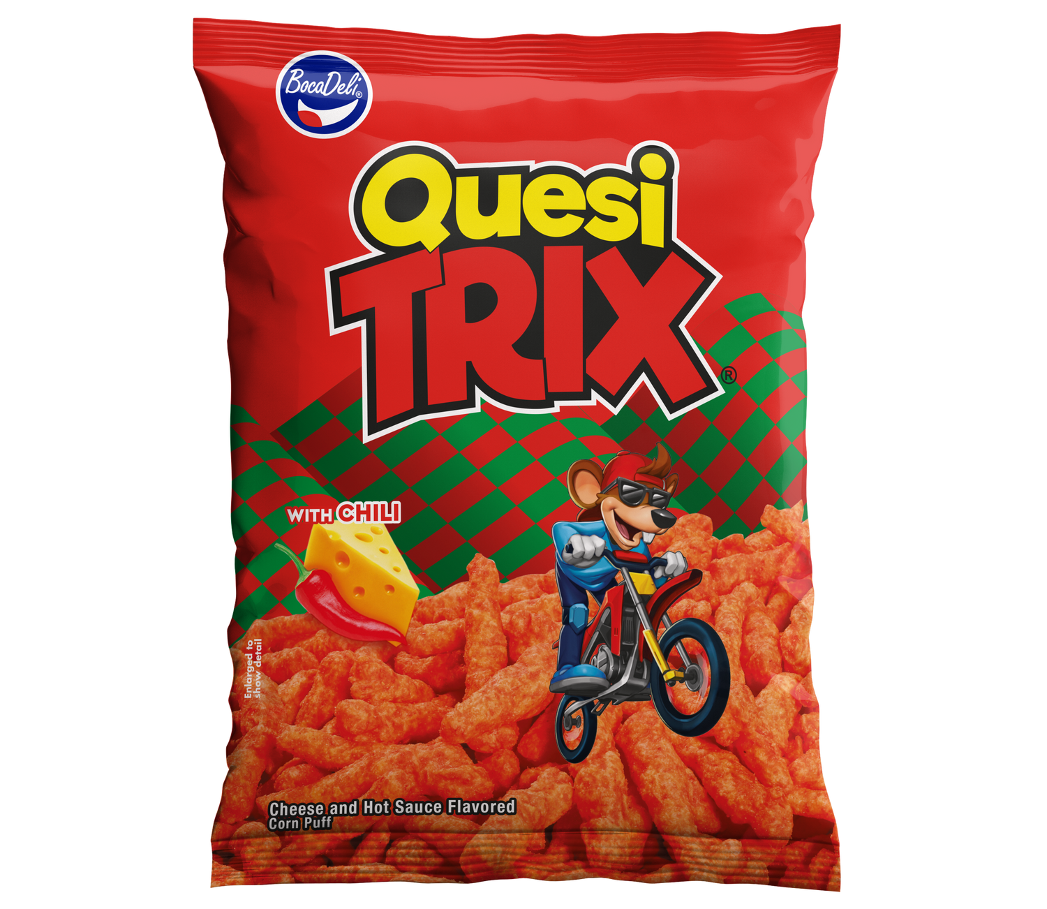 Disfruta el sabor intenso y crujiente de QuesiTrix con Chile de Bocadeli, uno de los snacks salvadoreños favoritos para quienes aman el toque picante.